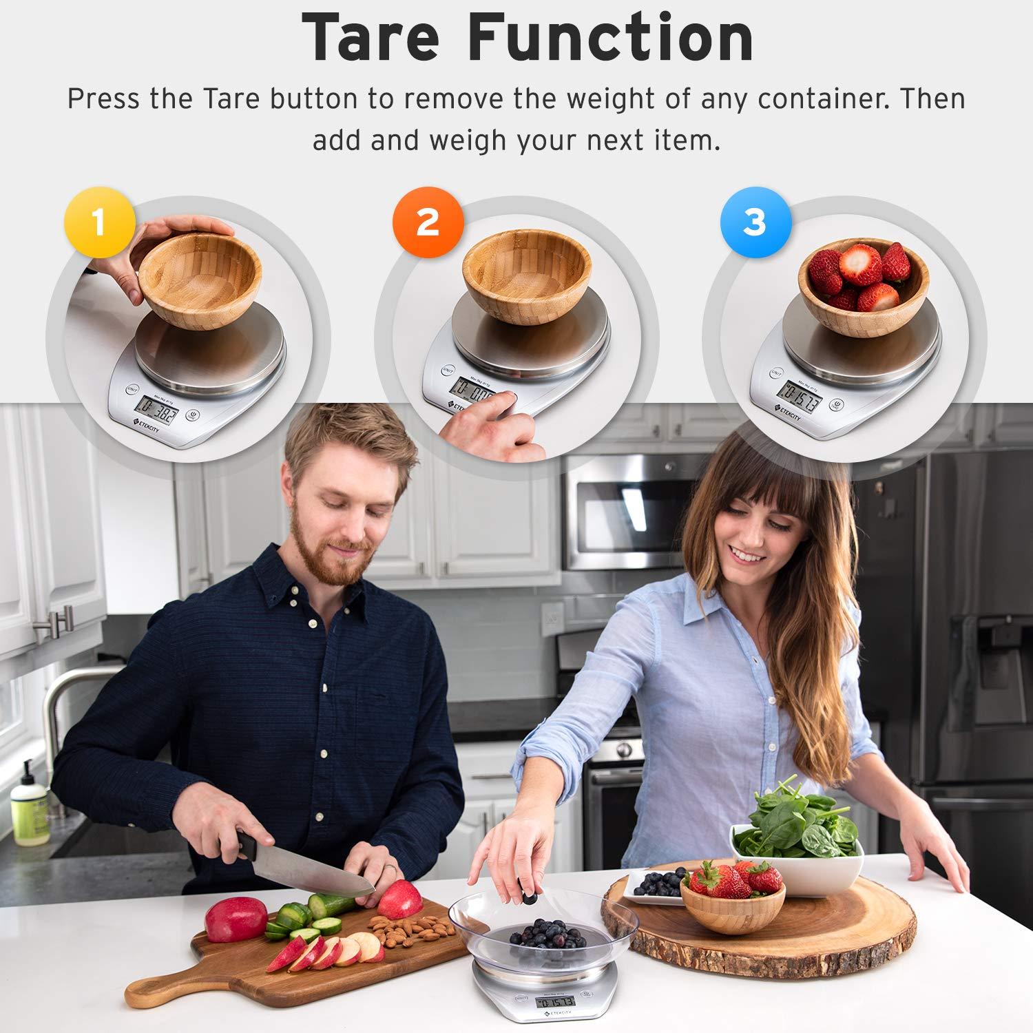 Various unit options: choose between 5 Available units: oz, lb. : oz, g, and ml. When measuring liquids in ml or, you can also select either water or milk density options. Use the Tare button to zero out the Weight of a container before measuring your food item