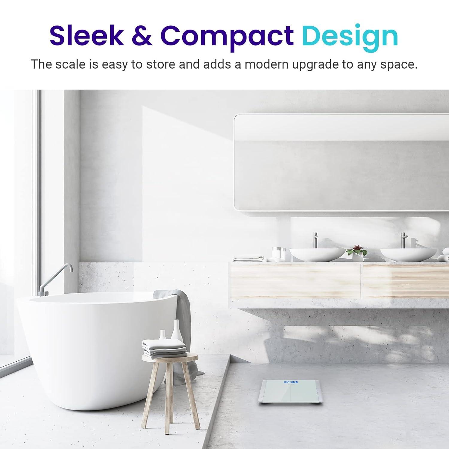 Sleek Design: This body weight scale’s modern, ash-grey design blends nicely with any style of living space. The rounded-corner design is also safer than sharp corners