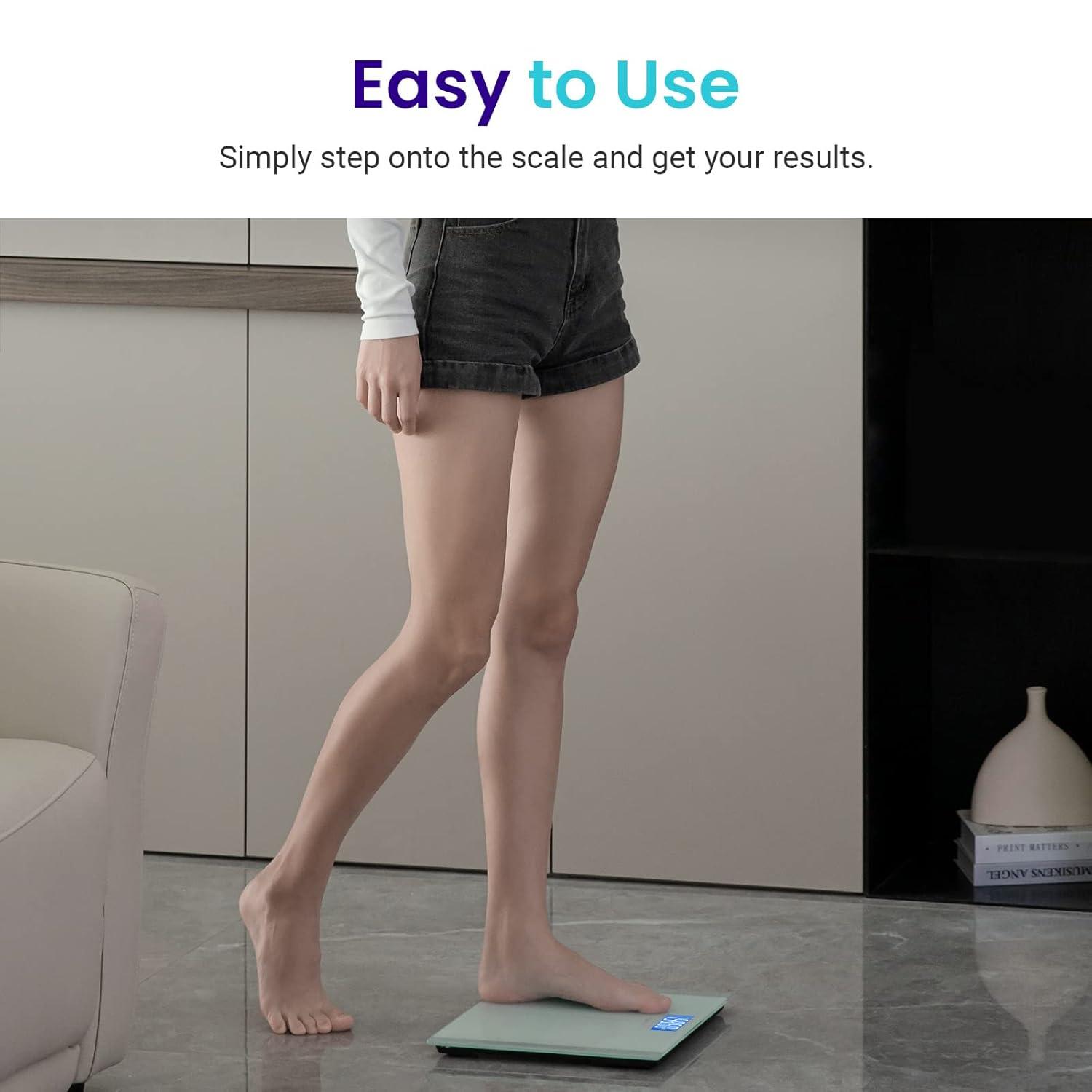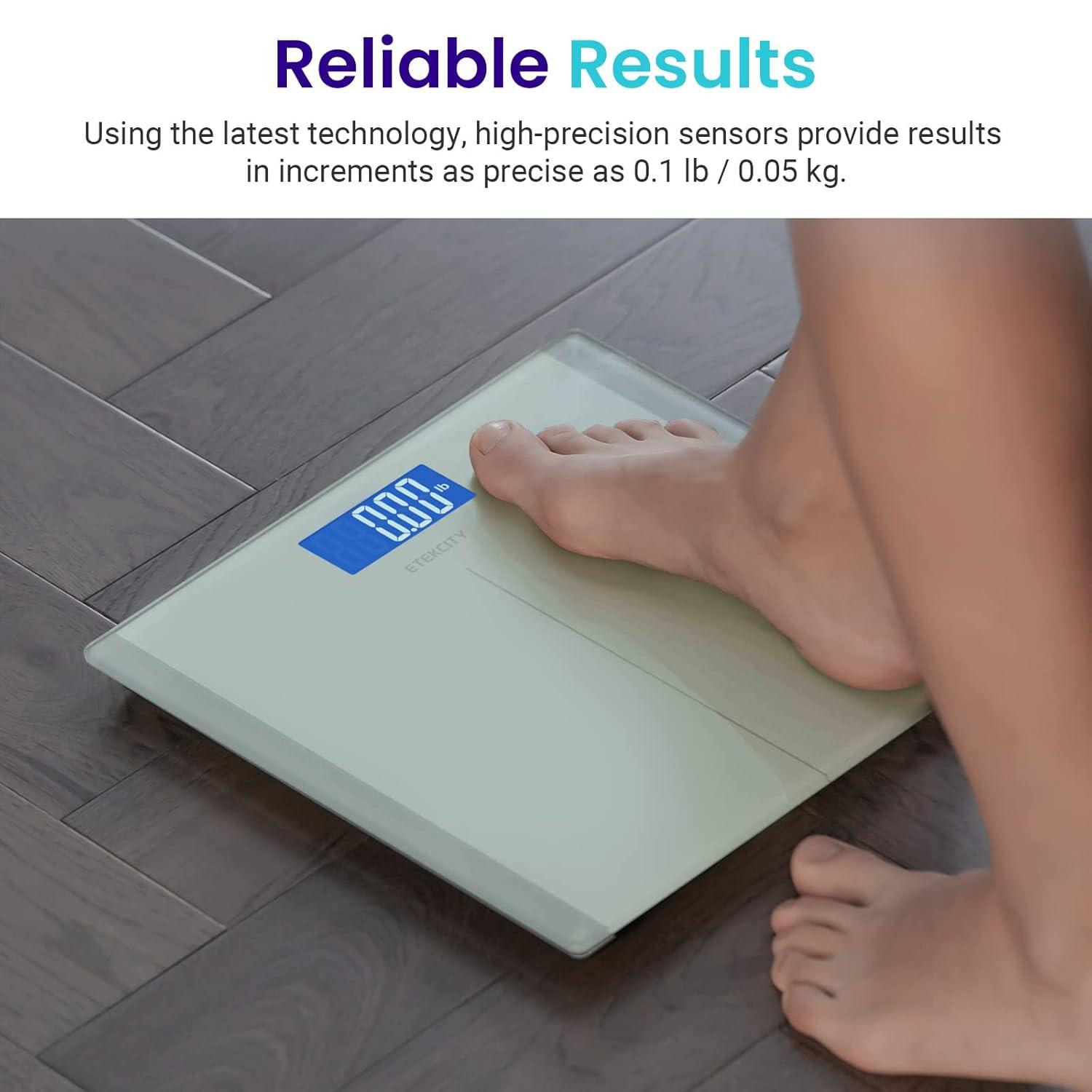 Etekcity Scale for Body Weight, Digital Bathroom Weighing Machine for People, Large and Easy-to-Read Backlight Display, Accurate with High Precision Measurements, Durable Tempered Glass, 400 lbs(Greenish-white)