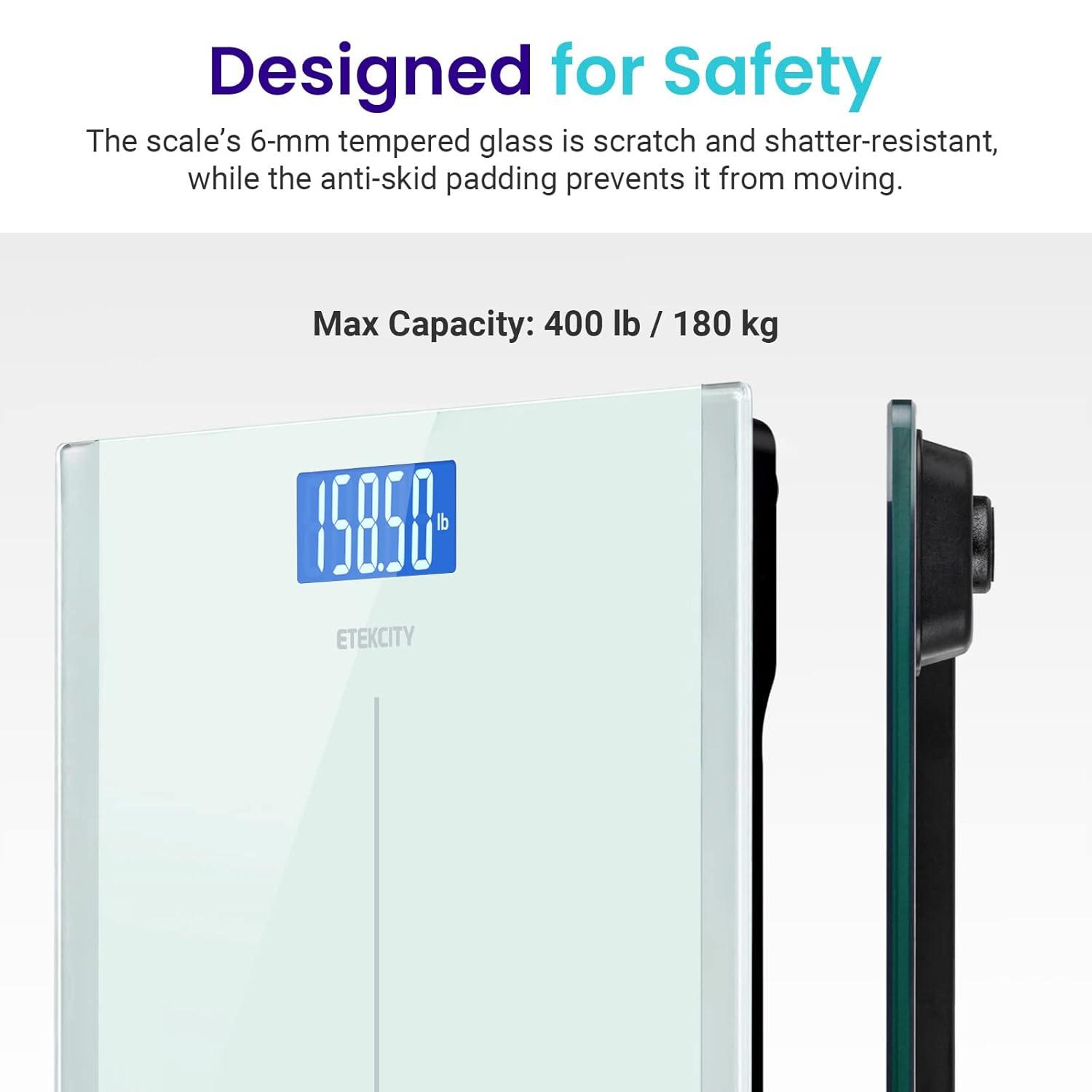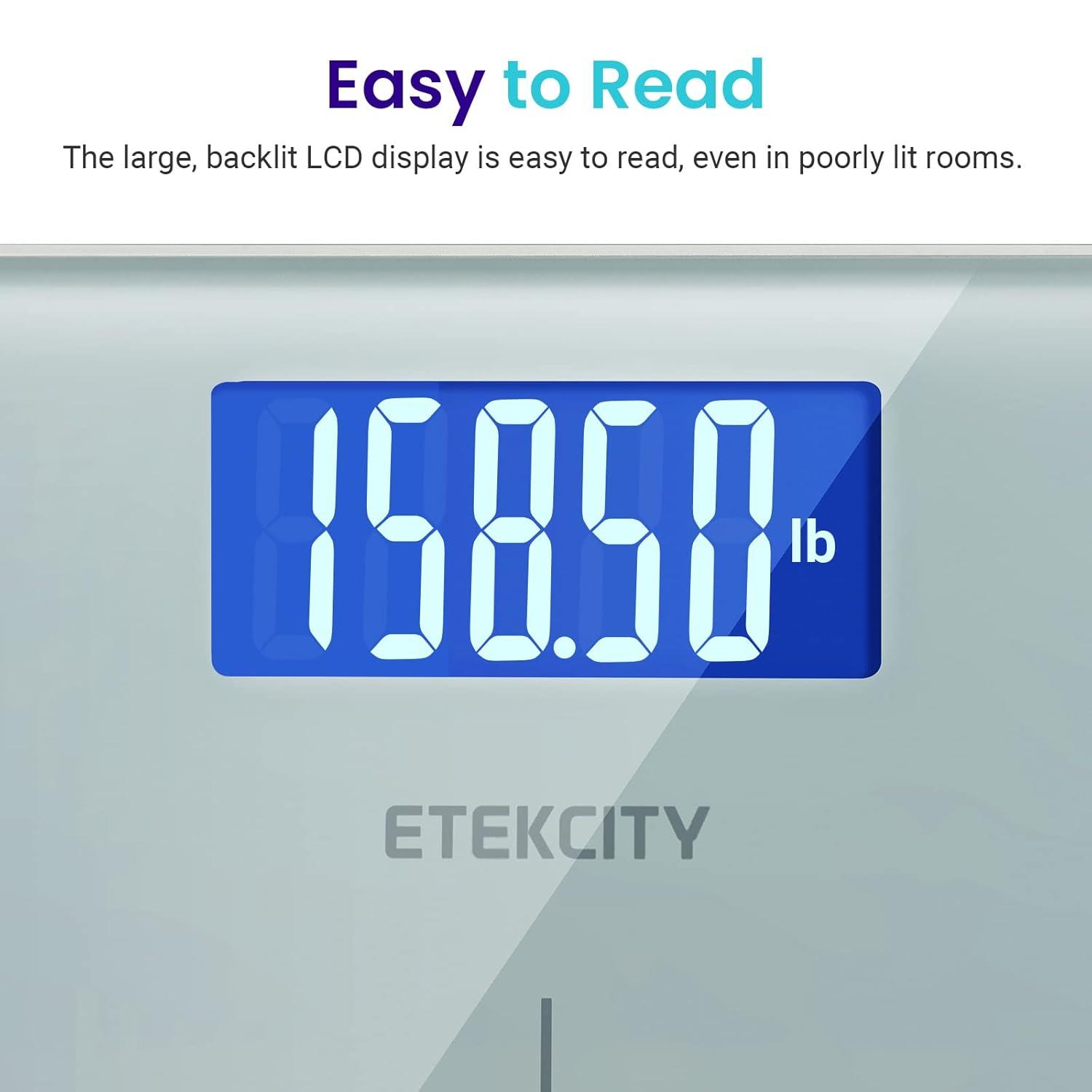 Etekcity Scale for Body Weight, Digital Bathroom Weighing Machine for People, Large and Easy-to-Read Backlight Display, Accurate with High Precision Measurements, Durable Tempered Glass, 400 lbs(Grey)
